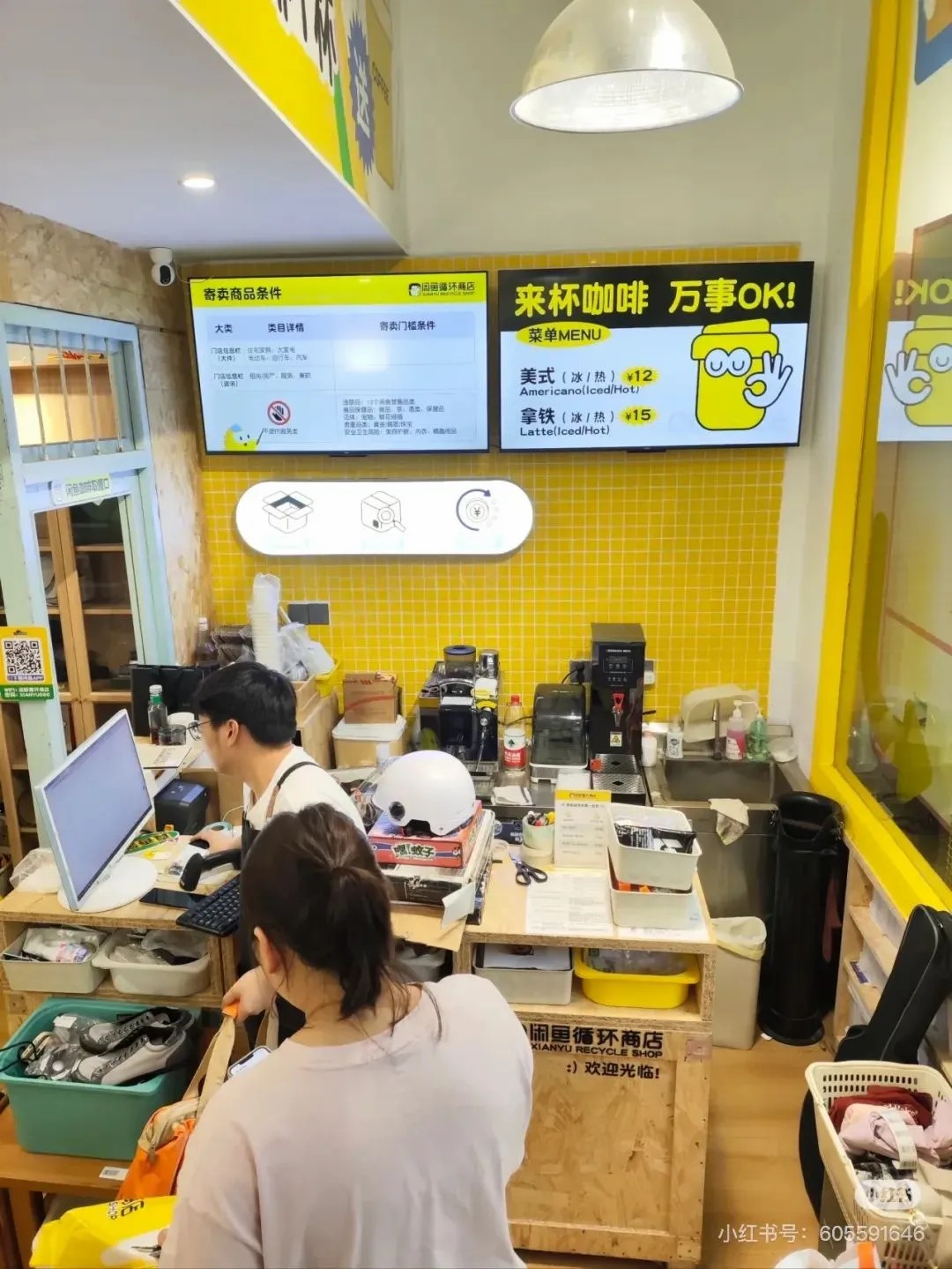 香港慢生活環(huán)保店Slowood,在保證質(zhì)量的前提下,店內(nèi)的所有商品去除一切包裝,或部分產(chǎn)品只采用環(huán)保的可降解材料,沒有任何塑料和紙張的浪費;位于杭州絲聯(lián)166文創(chuàng)園的閑魚循環(huán)商店,門店以閑魚APP標(biāo)志性的黃色為主色調(diào),門頭上標(biāo)注了“寄賣/二手/咖啡”字樣,門店屬性十分突出,門口還擺放了露營椅供顧客休息。