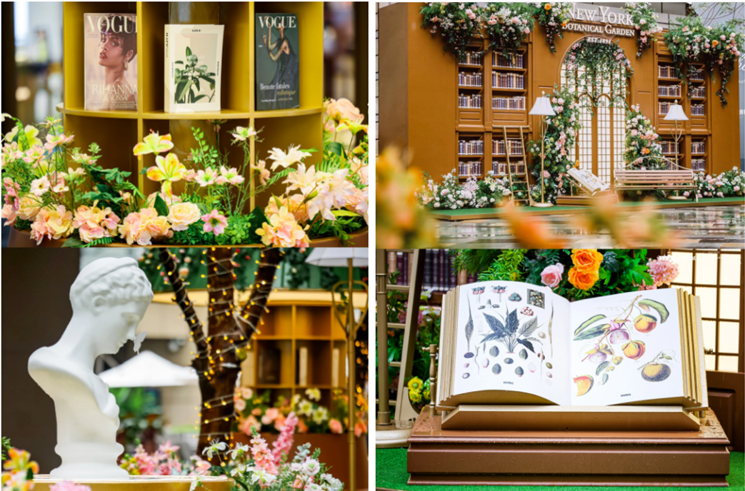 此次在深圳萬象城設(shè)立亞洲首展,掀起了一場城市綠野仙蹤式的浪漫仙境。如位于商場二期廣場的“漫櫻花殿”,標(biāo)志性的穹頂溫室外山櫻綻放,綠植花藝結(jié)合拱坡設(shè)計,讓人置身漫天花海。此外,在靈感一隅、仙夢迷徑、古希臘芙羅拉許愿池、花海大道、綠野書閣、悠澗瀾影、萬卉長廊等打卡點位,得以享受夢幻般的神奇體驗。