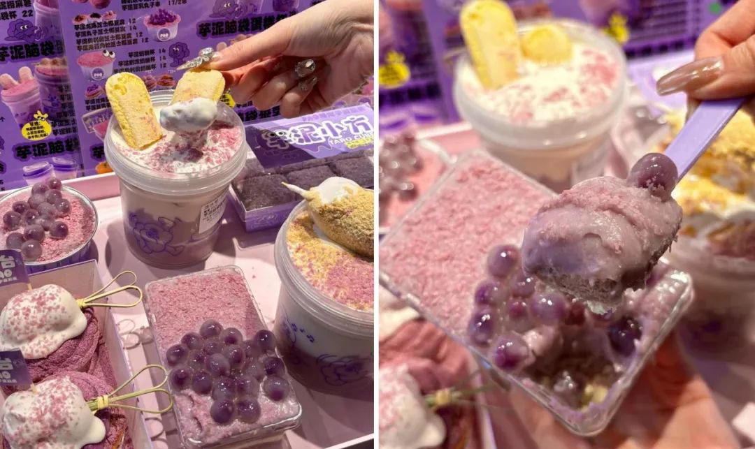 自成立以來,糖泡芋泥腦袋已經(jīng)在國內(nèi)外多個(gè)城市開設(shè)了50家門店。通過聚焦芋泥單品,開發(fā)出43款衍生品,包括手工制作的芋泥蛋糕腦袋杯、芒果芋泥冰、芋泥丸子蛋撻等,深受消費(fèi)者喜愛。此外,該品牌還注重食材的品質(zhì),例如種植200畝荔浦芋頭,確保從源頭把控品質(zhì)。糖泡芋泥腦袋的運(yùn)營策略實(shí)現(xiàn)了垂直品類的供應(yīng)鏈穿透。