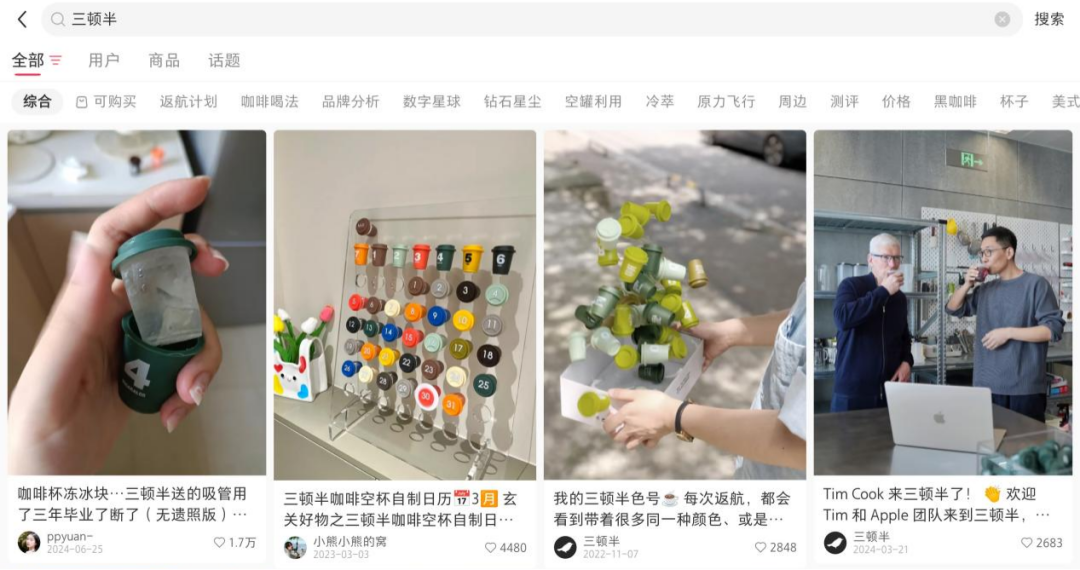 三頓半作為咖啡領(lǐng)域的創(chuàng)新先鋒,其憑借獨(dú)特的小罐咖啡形式,曾在小紅書(shū)上掀起了一股咖啡熱潮。眾多美食和飲料主播使用三頓半推出各種創(chuàng)意的咖啡沖泡教程和咖啡與美食搭配的內(nèi)容,如咖啡拿鐵、摩卡星冰樂(lè)等,為用戶展示了咖啡的無(wú)限可能性。消費(fèi)者也積極響應(yīng),在小紅書(shū)上分享自己獨(dú)特的“三頓半空罐創(chuàng)意玩法”,將空罐制作成各種精美的手工飾品,展現(xiàn)了他們對(duì)生活的小巧思和對(duì)品牌的熱愛(ài)。此外,三頓半還精心策劃了豐富的營(yíng)銷(xiāo)活動(dòng),例如“返航計(jì)劃”,該活動(dòng)鼓勵(lì)用戶收集咖啡空罐,并前往指定地點(diǎn)兌換周邊產(chǎn)品或參與線下活動(dòng)。這不僅有效提高了用戶的參與感,還極大地增強(qiáng)了品牌忠誠(chéng)度。