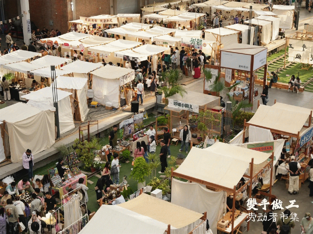 除了戲劇演出,上生·新所公共空間五一期間也舉辦了以“松弛療愈”為主題的手作市集活動,60+原創(chuàng)設計攤主為大家?guī)硪粓龇淳懑熡凳屑?,向市民游客傳遞各自的“慢生活”哲學,讓我們找到都市煙火氣、找到人與人單純善意的社交,讓藝術浸潤生活,成為城市文化能量的聚集地。