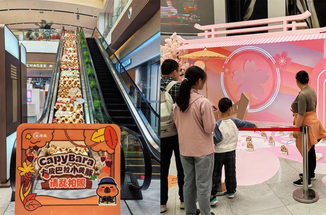 龍玥城自開業(yè)以來根植“悅己主義”持續(xù)打造有趣的沉浸式互動體驗活動,今年五一期間更開啟了一場玩趣生活嘉年華,從潮流IP打卡到科普研學,從傳統(tǒng)游戲到驚險表演,精準覆蓋消費者多元化需求??ㄆぐ屠↑S豚電梯瀑布快閃活動設置了一整個電梯的潮流IP卡皮巴拉小黃豚,結(jié)合皮巴拉主題的立牌套圈游戲,吸引眾多消費者前來打卡。